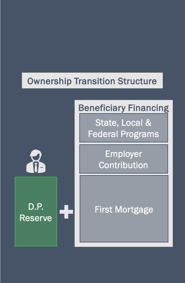 At the end of the 3-year period, participants are offered the opportunity to purchase their home using their reserve funds, traditional mortgages, employer contributions, and/or public homebuyer assistance programs. Our goal is to make the path to ownership achievable and lasting.